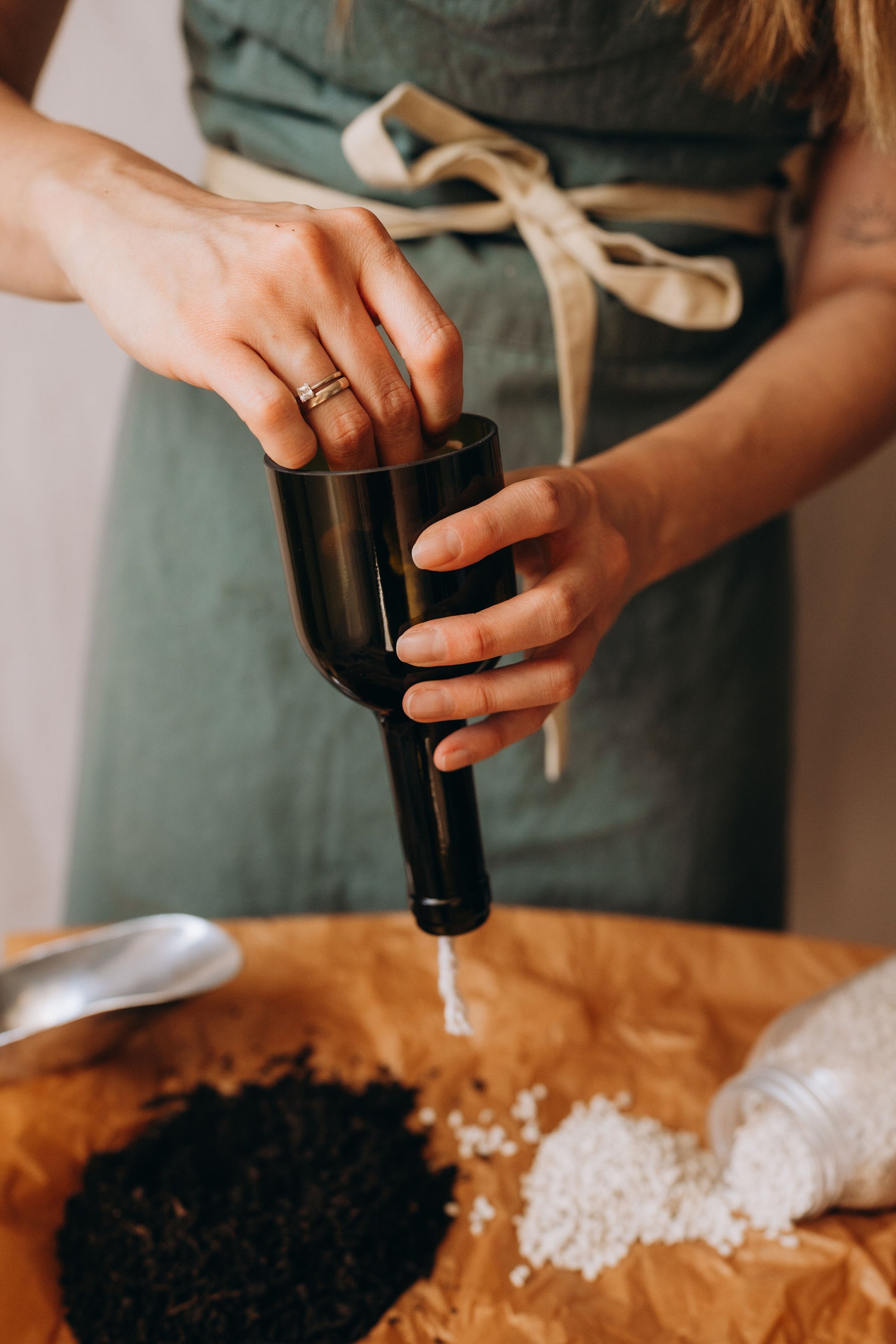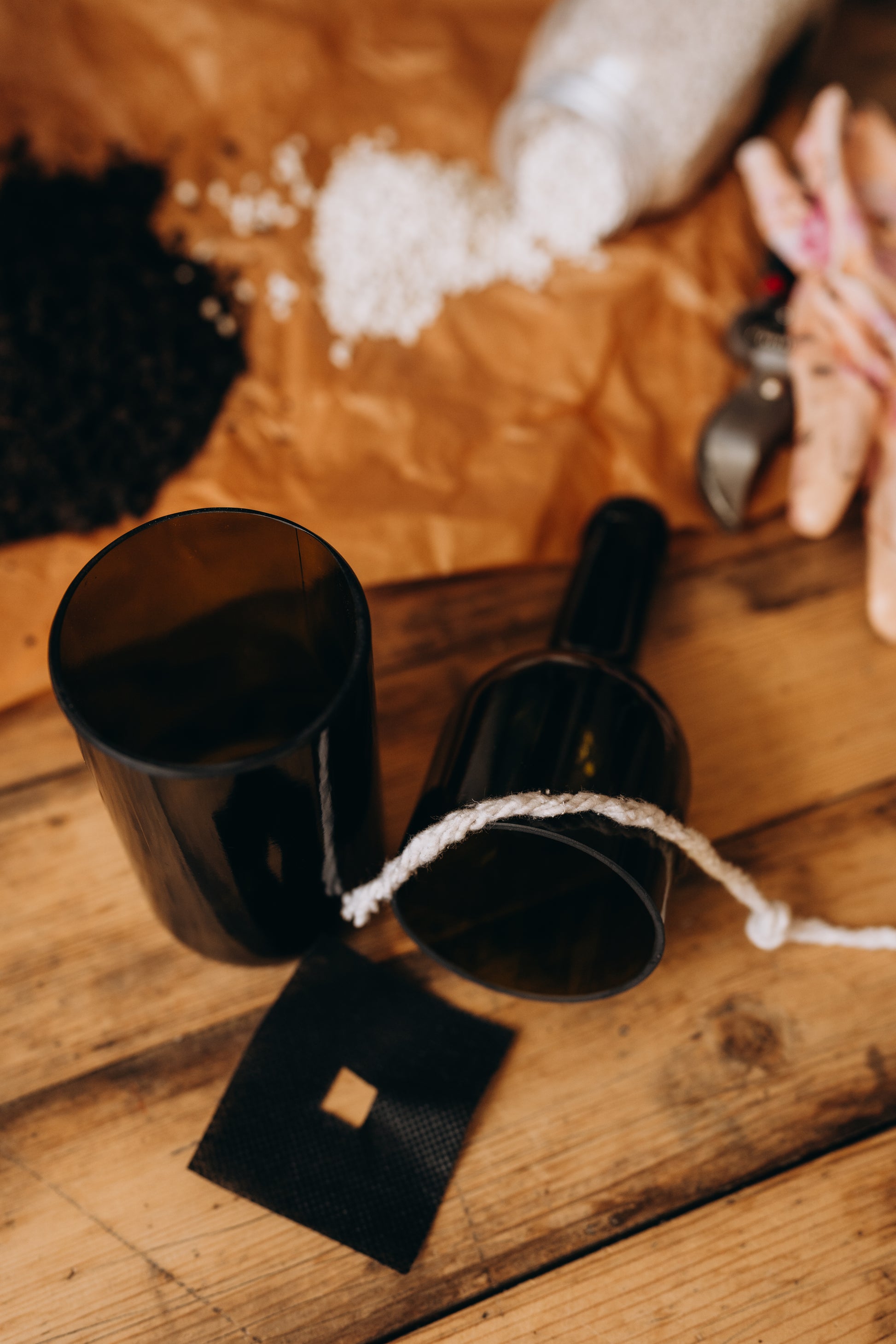 • Изработено от upcycled винена бутилка